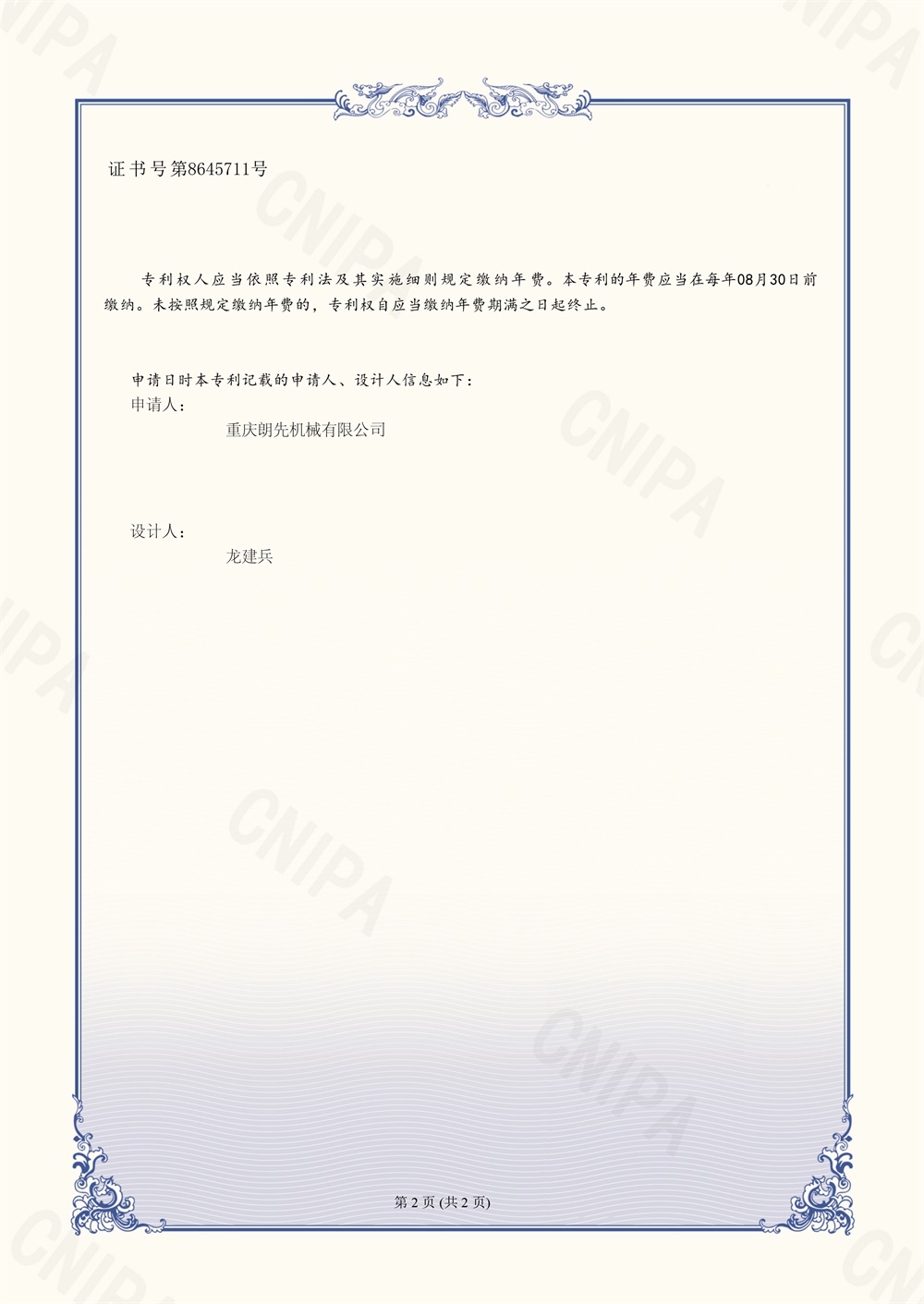 刻槽钻杆-外观设计专利证书-2